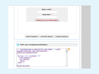 Документ описывает стратегии малобюджетного продвижения малого бизнеса с акцентом на доверительный маркетинг и активацию отношений с клиентами через «добровольный маркетинг». Основное внимание уделяется созданию ценной информации для клиентов и регулярной рассылке, которая помогает установить доверие и повысить продажи. Также упоминается использование автоматизированных писем и различных платформ для рассылки, как бесплатных, так и платных.
