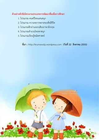 ตัวอย่างหัวข้อโครงงานประเภทการพัฒนาสื่อเพื่อการศึกษา