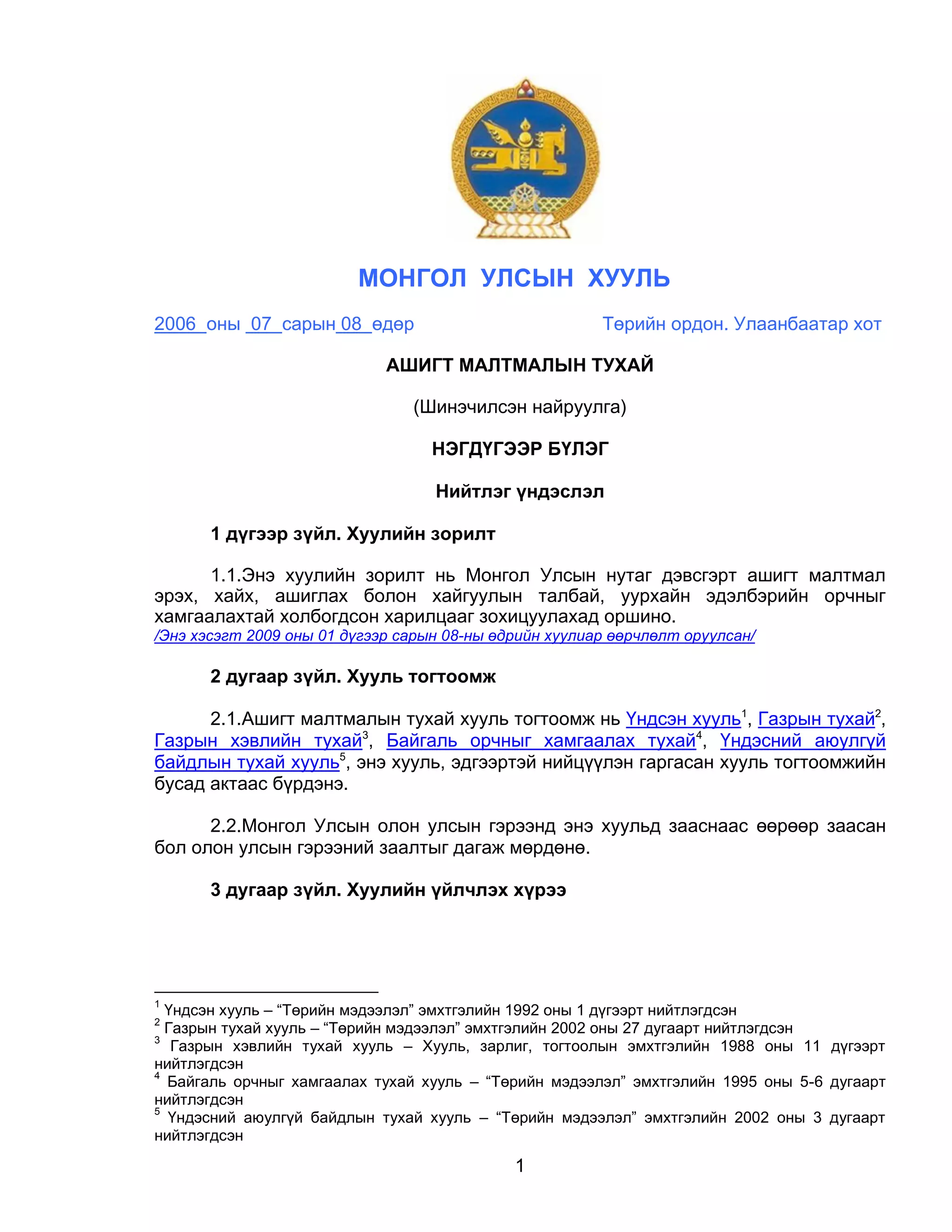2 дугаар зүйл. Хууль тогтоомж