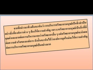 ทรัพยากรมนุษย์ จึงเป็ นกระบวนการจัดการในเรื่องการวางแผน การวางนโยบาย