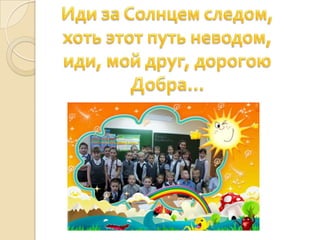 Документ описывает оформление классного уголка как игровой карты путешествий, с девизом о стремлении к миру и добру. Он включает различные символы, представляющие ключевые аспекты воспитательной работы, такие как радость жизни и любовь к родине. Основная цель заключается в обеспечении счастливого детства для детей через игру и добрые отношения.
