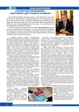 розвитку. Вінниччина вже має свою стратегію. Вона розрахована до