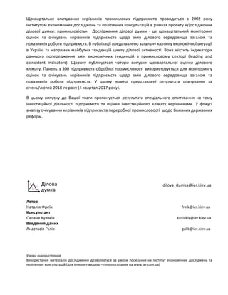 інвестиційної діяльності підприємств та оцінки інвестиційного клімату керівниками. У фокусі