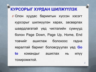 O Left - текстийг зүүн талд нь зэрэгцүүлнэ Ctrl + L
