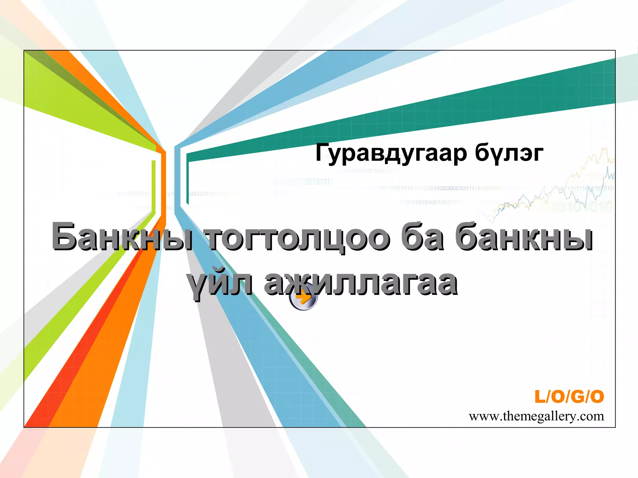 Банкны тогтолцоо ба төв банкны үйл ажиллагаа