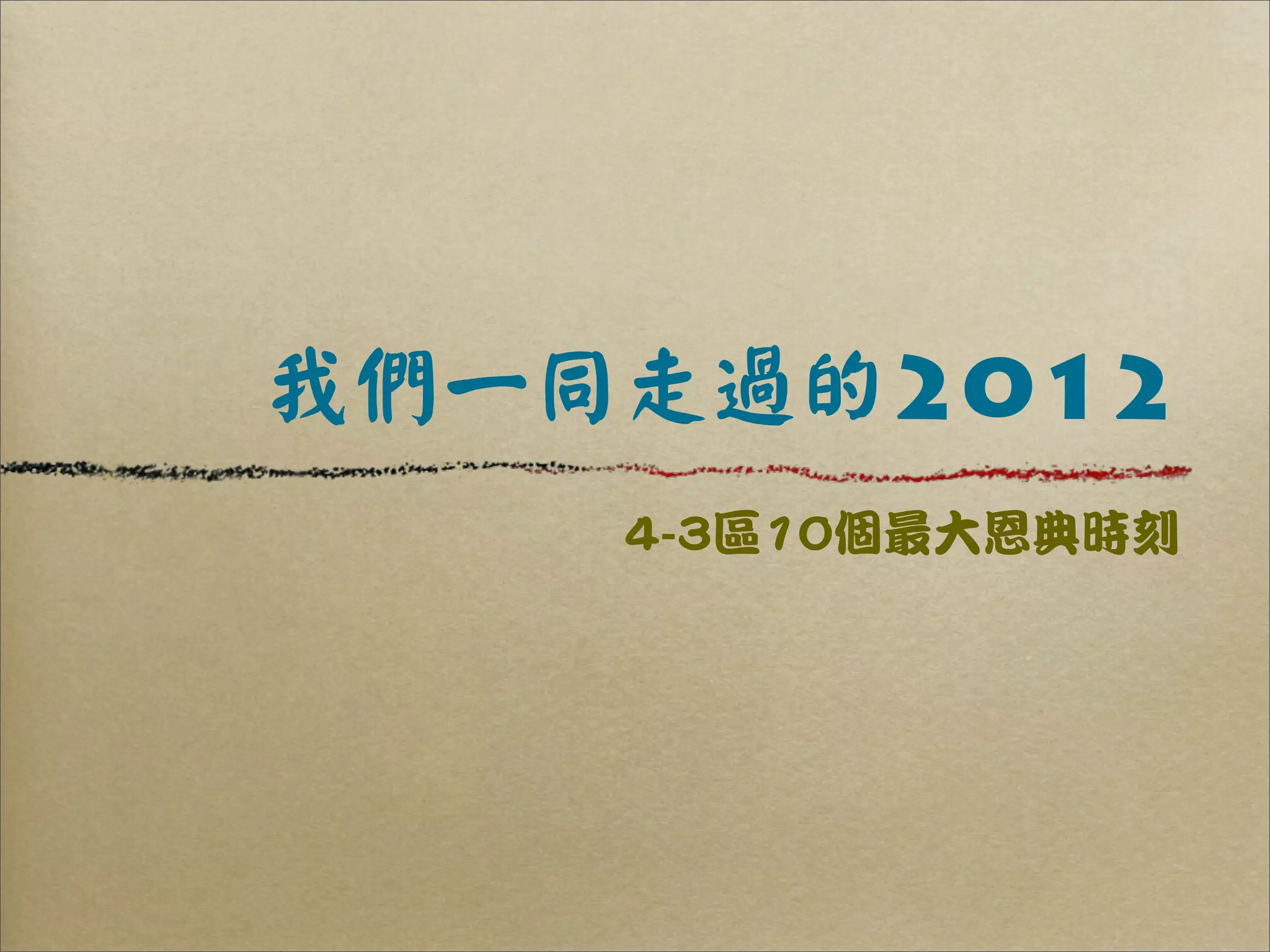 文档回顾了2012年4-3区的重大时刻,包括胡琳的婚姻奉献、社区的成长与团结、福音主日的成功以及新信徒的诞生。强调了彼此相爱的核心价值和社区生活的喜乐和温暖。展望2013年,提出了加强弟兄姊妹之间的连结和共同经历神的期望。