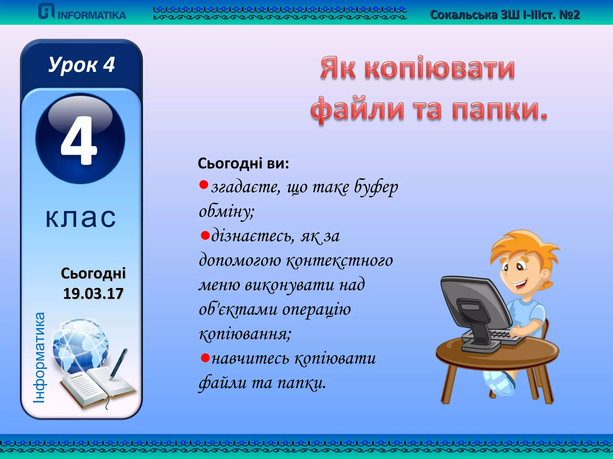 Завдання: навчитися копіюватифайли та папки за допомогою