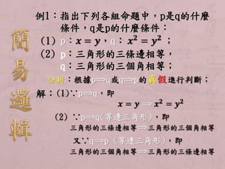 例1:指出下列各組命題中,p是q的什麼 條件,q是p的什麼條件: (2)