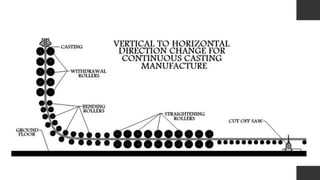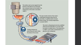 •การหล่อต่อเนื่องเป็นกระบวนการสำาหรับการเปลี่ยนเหล็กเหลวให้เป็น