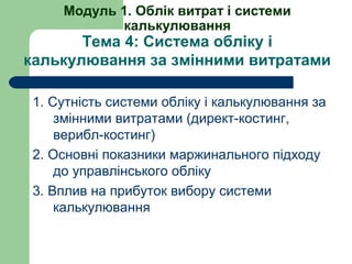 1. Сутність системиобліку і калькулювання за змінними витратами