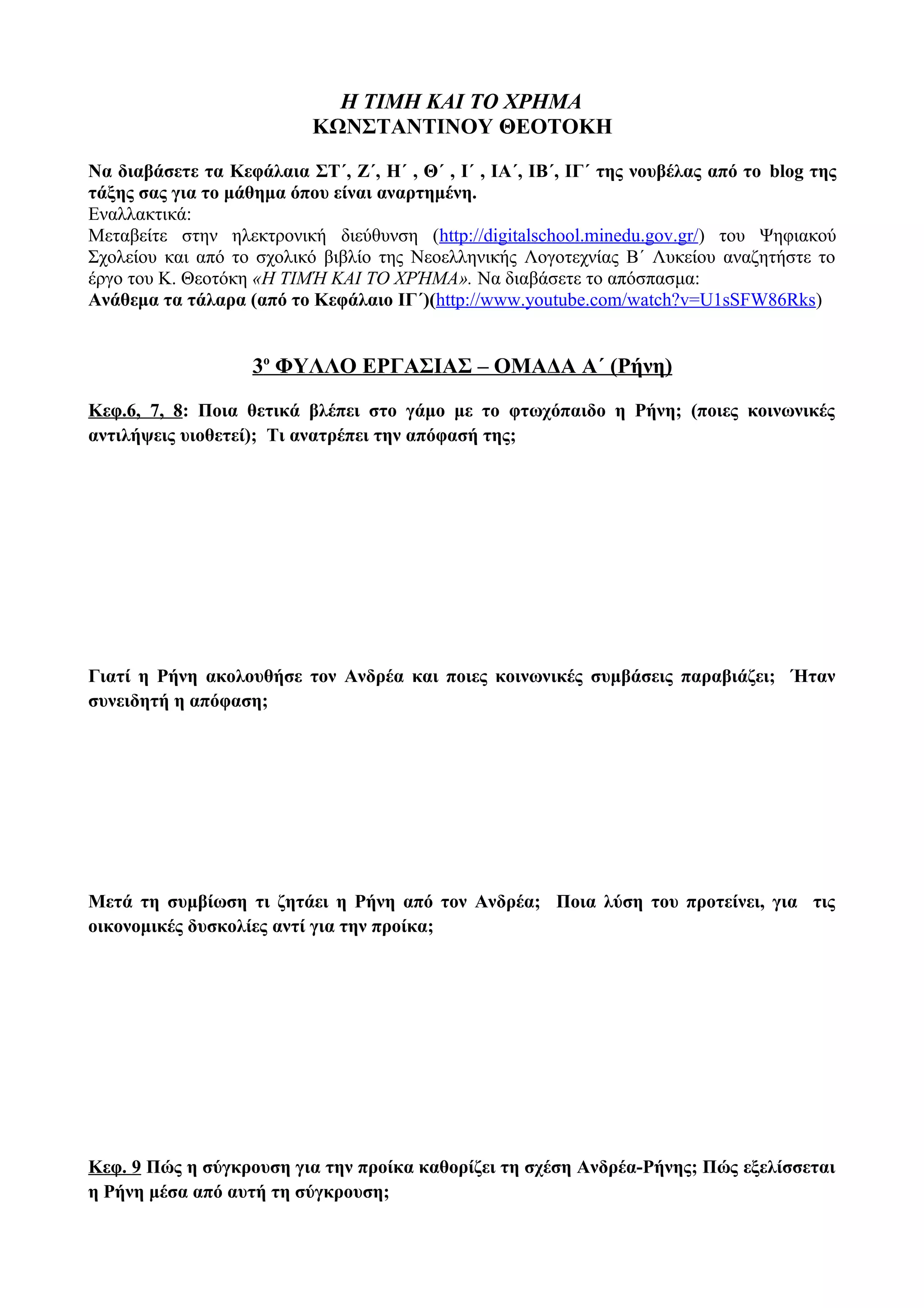 έργο του Κ. Θεοτόκη «Η ΤΙΜΉ ΚΑΙ ΤΟ ΧΡΉΜΑ». Να διαβάσετε το απόσπασμα:
