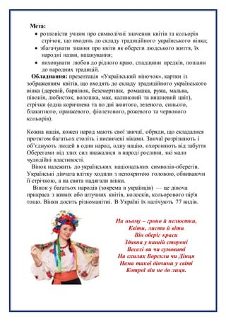 володіє чарами. А ще вінок на голові і для здоров'я, тому є квіти, які