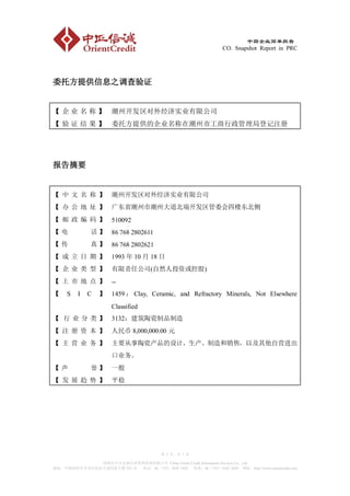 潮州开发区对外经济实业有限公司成立于1993年,是一家专注于陶瓷产品设计、生产和销售的有限责任公司,注册资本为800万元人民币。该公司主要出口业务占比80%,目标市场包括欧洲、中亚和东南亚,但近期因金融危机受到影响。主要经营者李汉波在公司中担任法定代表人,拥有丰富的经营管理经验。