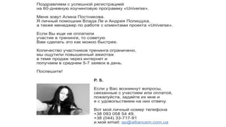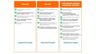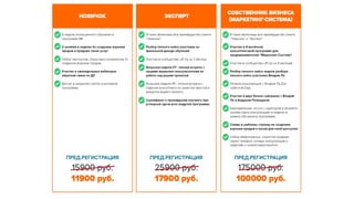 Документ описывает курс по упаковке бизнеса с акцентом на его привлекательность для целевой аудитории и увеличение клиентской базы. Он включает в себя элементы маркетинга, ошибки в упаковке, процесс создания продукта, доверие клиента и практические задания. Курс направлен на помощь в формировании ценных предложений и создании идеального продукта для целевой аудитории.