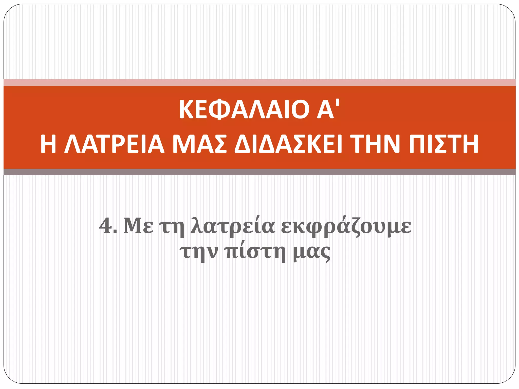 α) Η πίστηαποτυπώνεται στη λατρεία: