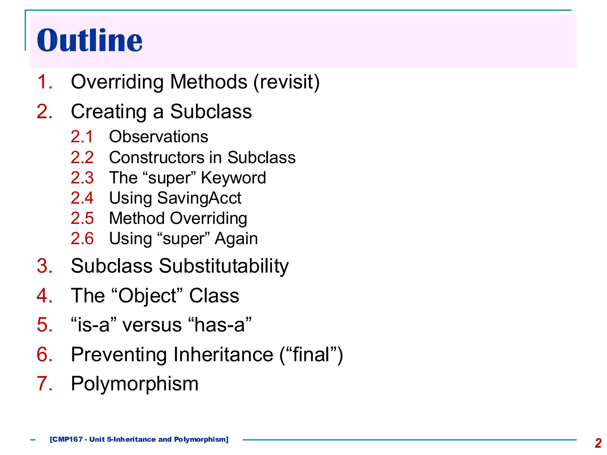 This document outlines key concepts of object-oriented programming, focusing on inheritance and polymorphism. It explains how subclasses can inherit properties from parent classes, the importance of method overriding, and the use of the 'super' keyword in subclasses. Additionally, it touches on the relationship between classes, encapsulation, and potential pitfalls of overusing inheritance.