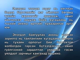 ýñâýë ¿ëäñýí õóãàöààíä íü ýëýãääèéã çàëðóóëàí òîîöîõ