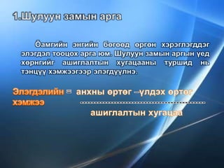 Эíýõ¿¿ àðãà íü ýëýãäýëèéã òîîöîîëîõ õóðäàâ÷èëñàí àðãûí