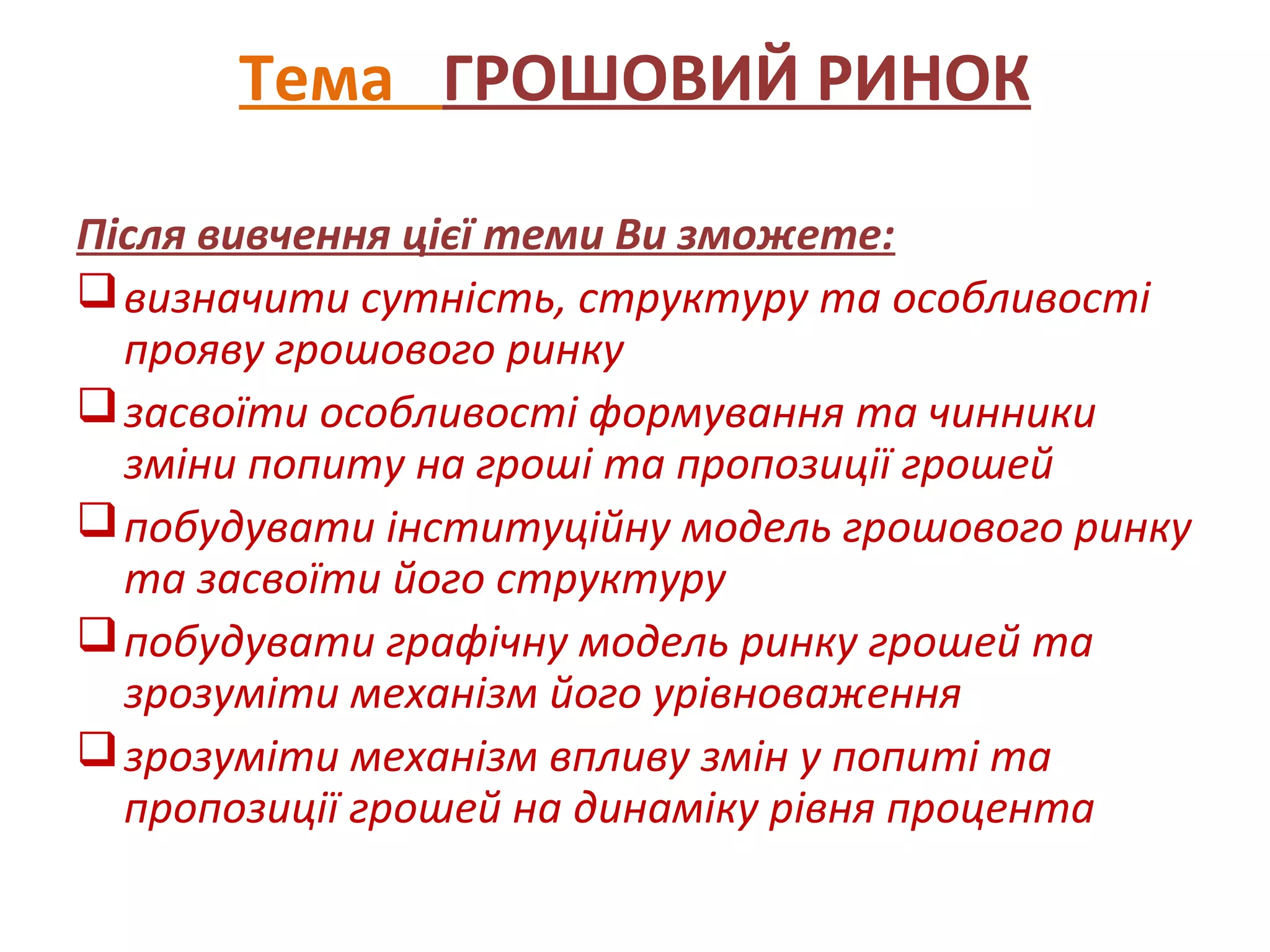 Тема ГРОШОВИЙ РИНОК