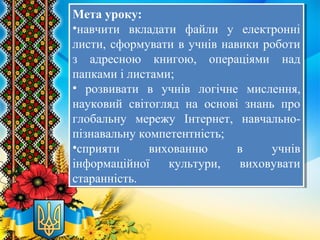 •навчити вкладати файли у електронні