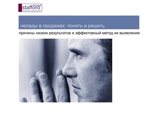 Документ обсуждает проблемы в управлении продажами, включая низкие показатели и недостатки в стратегиях. Приводятся решения, такие как внедрение KPI и изменение системы мотивации, которые могут привести к значительному росту доходов. Примеры успешных кейсов продемонстрированы, подтверждая эффективность предложенных мер.