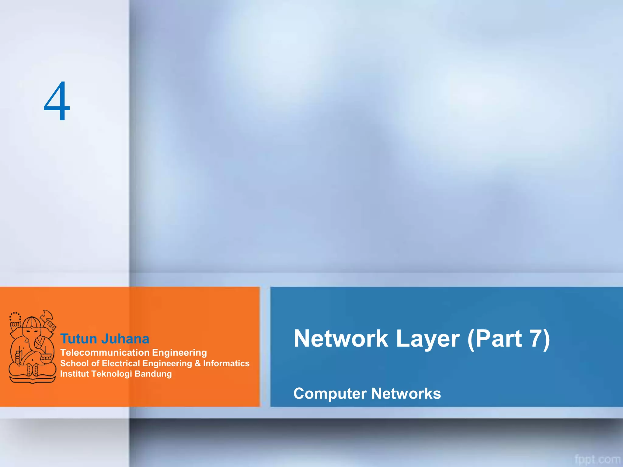 This document provides an overview of unicast routing protocols, including RIP, OSPF, and BGP. It begins by explaining key concepts like cost metrics and static versus dynamic routing tables. It then describes different types of routing protocols and how they support intra-domain and inter-domain routing. The document focuses on distance vector protocols like RIP and link state protocols like OSPF. It explains the Bellman-Ford and Dijkstra algorithms used to calculate optimal paths and build routing tables. It also covers topics like split horizon, poison reverse, and link state packet flooding in OSPF.