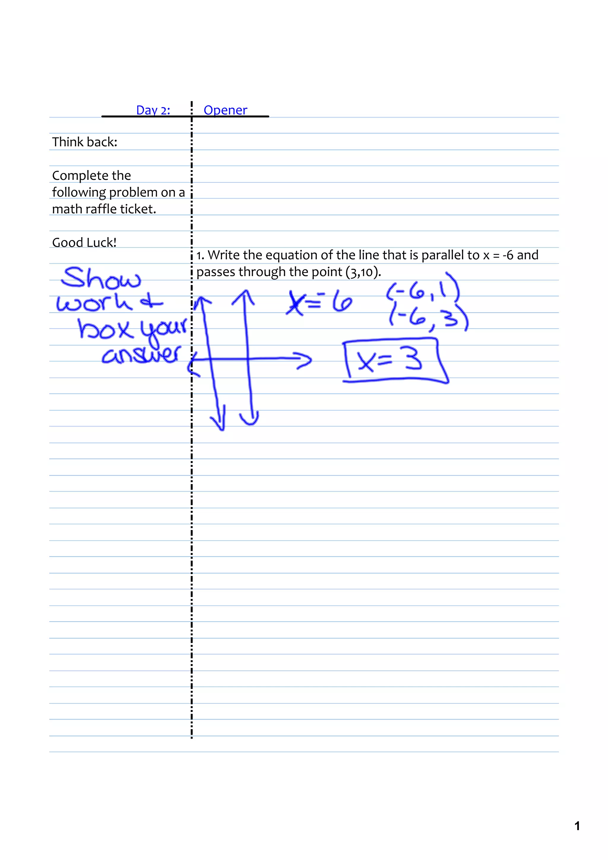 - Ask students to consider how to graph a line in standard form for the exit slip
