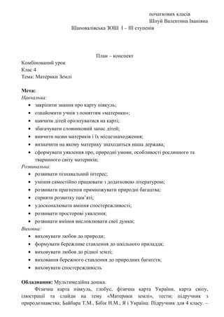 Творча робота: здійснити уявну подорож по одному з материків Землі за