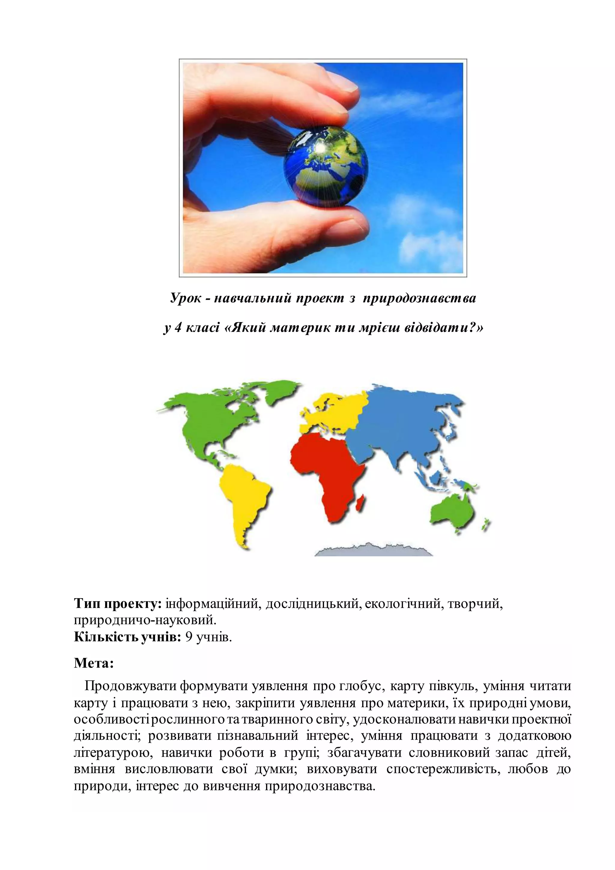 Навчальний проект з природознавства. 4 клас. Який материк ти мрієш відвідати