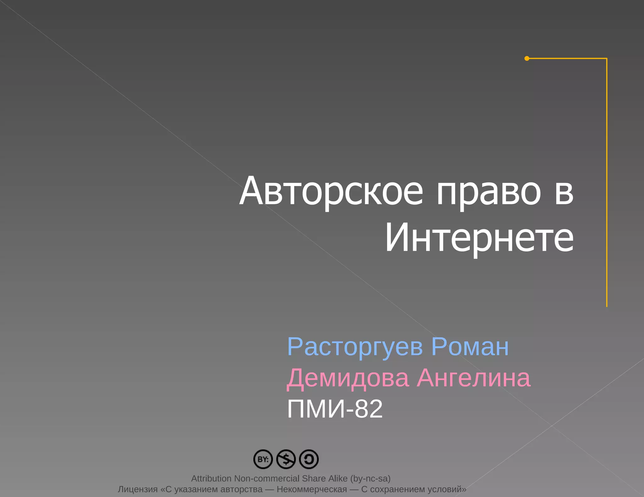Документ обсуждает авторское право в интернете, включая права авторов на произведения и различные формы охраны интеллектуальной собственности. Он описывает, как авторское право возникает, его основные категории и условия, а также сроки его действия после смерти автора. В документе также рассматриваются ограничения и правила цитирования, а также особые условия для программного обеспечения и баз данных.
