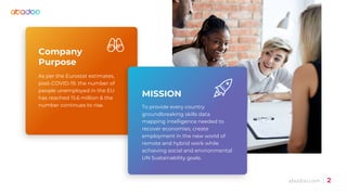 Abodoo aims to utilize innovative skills data mapping technology to aid local governments in addressing unemployment and supporting economic recovery post-COVID-19. The solution offers real-time skills intelligence, facilitating job creation, and enhancing connection between companies and job seekers. By leveraging this platform, governments can make informed decisions on infrastructure, workforce development, and attracting investment to meet sustainability goals.