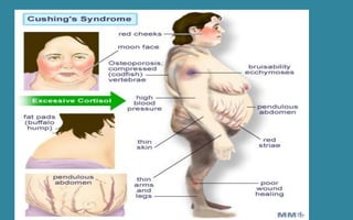 Addison's disease and Cushing's syndrome are both adrenal disorders but with opposite causes and manifestations. Addison's disease is caused by adrenal insufficiency leading to low cortisol and aldosterone. Symptoms include fatigue, weight loss, hyperpigmentation and hypotension. Cushing's syndrome is caused by excessive cortisol secretion leading to central obesity, hypertension and hyperglycemia. Diagnosis involves blood and urine tests to measure hormone levels. Treatment of Addison's disease involves hormone replacement therapy while treatment of Cushing's focuses on reducing excess cortisol levels through surgery, radiation or drug therapy.