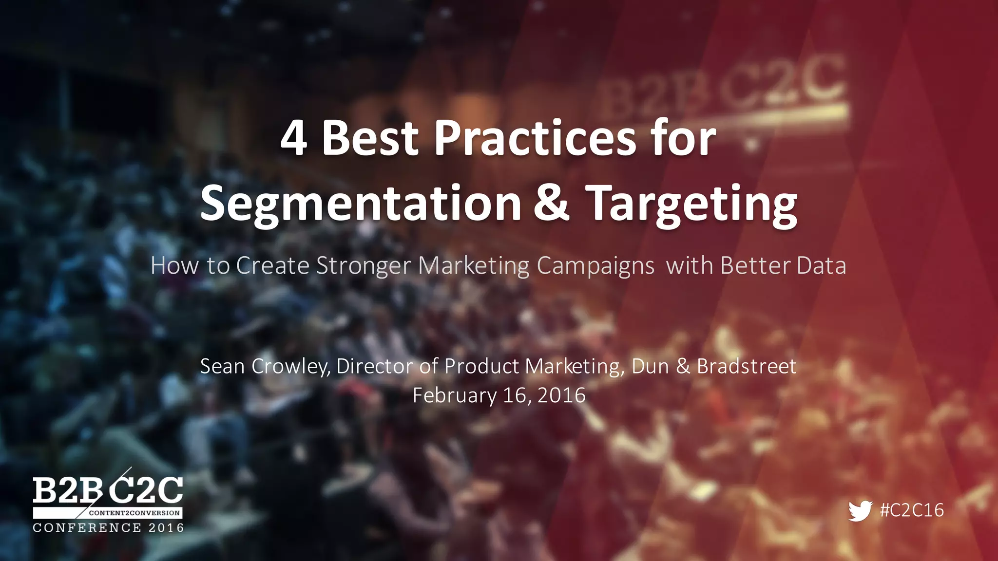 Sean Crowley outlines four best practices for effective segmentation and targeting in marketing: understanding what makes your offerings unique, identifying your ideal customer profile, developing key personas, and leveraging behavioral triggers to enhance the buying journey. Quality data is crucial, as organizations often struggle with data completeness and integration. The recommendations emphasize using relevant content and technology to create more personalized marketing campaigns.