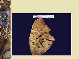 Clinical presentation Theproduction of large quantities of purulent and often foul-smelling sputum. The volume of sputum can be used for estimating the severity of the disease Mild < 10 mL Moderate 10~150 mL Severe >150 mL ※ Dry bronchiectasis usually involve the upper lobes