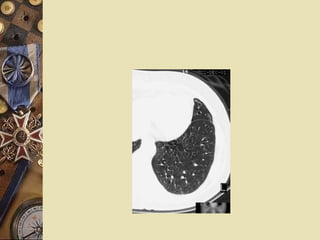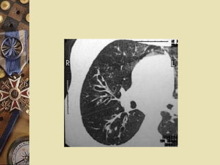 Clinical presentation Physicalfinding Early phases or dry variety: normal Severe or secondary infection: persisting crackling rales in the same part of lung Later stage: digital clubbing, emphysema, and cor pulmonale.