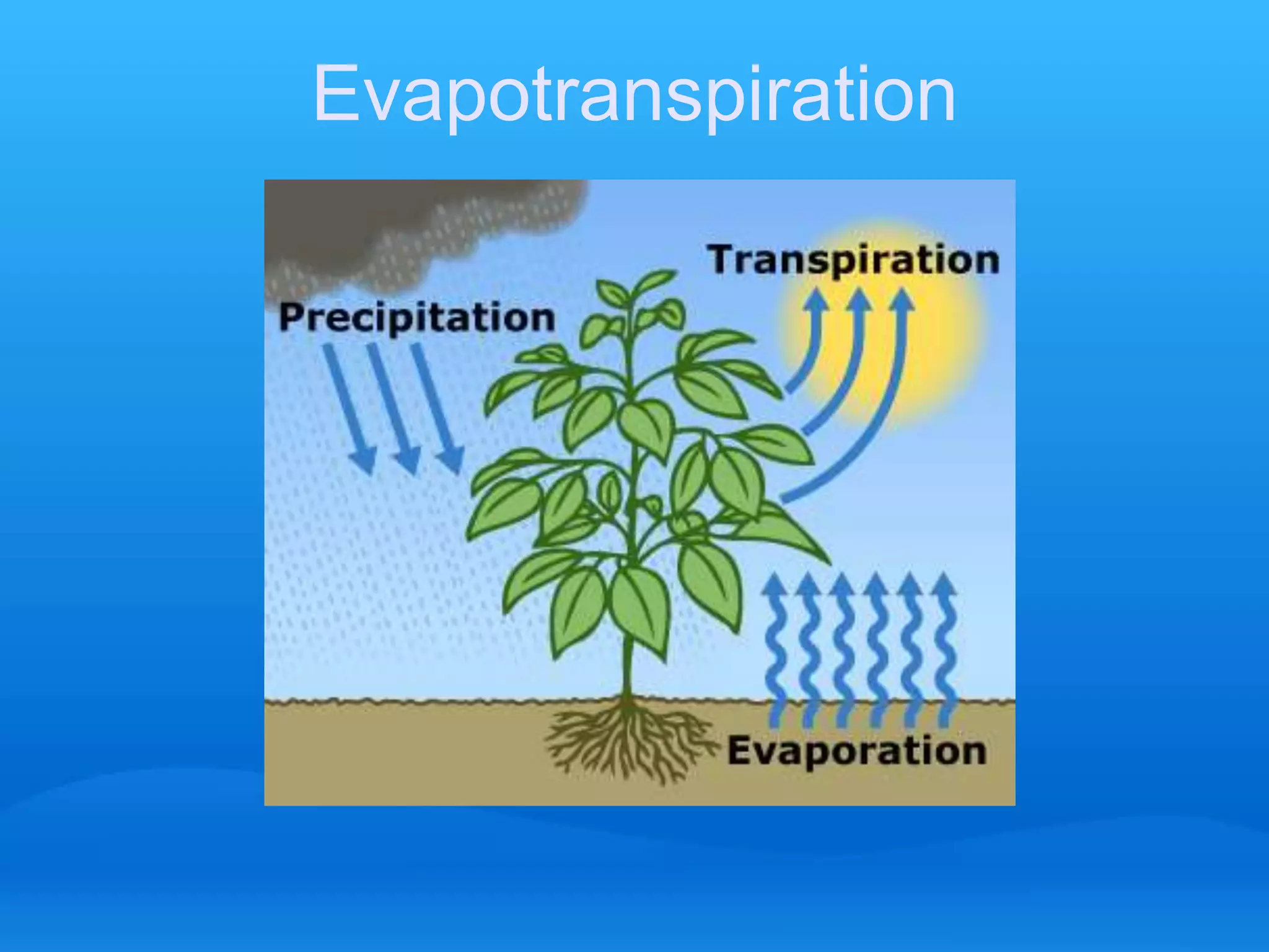 This document discusses trends in evapotranspiration and evaporation in the Coon Creek Watershed District over the past decade. It shows that excess precipitation from evapotranspiration and evaporation has decreased based on Thornthwaite and evaporation coefficient models. This decrease in excess precipitation is expected to result in less natural recharge and loss of lakes and wetlands in the watershed district.