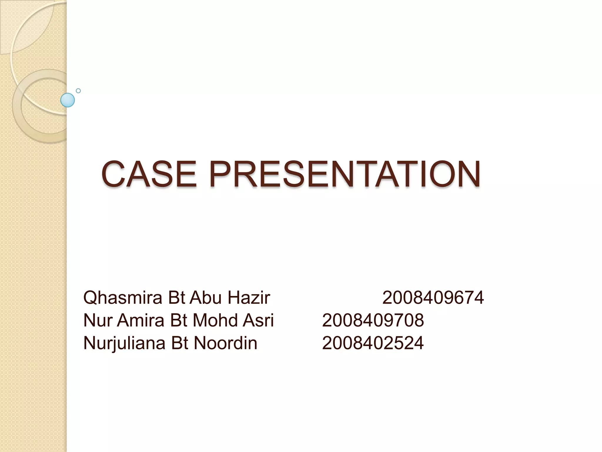 - FA, a 2-year-old Malay girl, was admitted to the hospital due to 3 episodes of seizures associated with 2 days of fever and vomiting.
