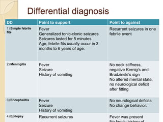 - She received antipyretics, anti-seizure medication, and antibiotics. No further seizures occurred and she improved with treatment. Her diagnosis was complex febrile seizures presumed to be caused by meningitis.