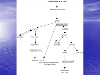 2. Monosaccharides are absorbed into the bloodstream via active transport against concentration gradients or facilitated diffusion. Glucose is transported to tissues like the liver and brain, while pentoses are excreted by the kidneys.