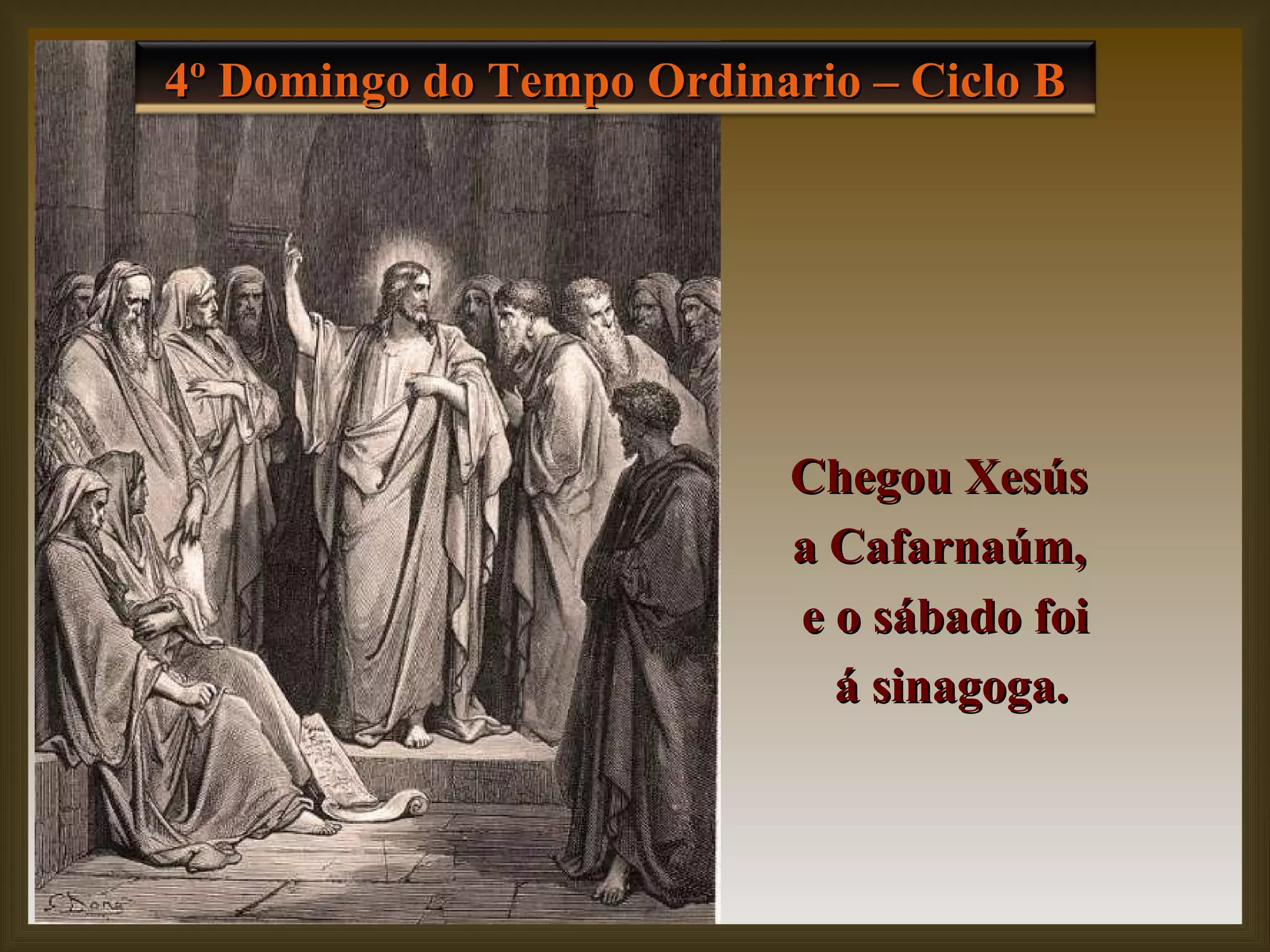 Chegou Xesús a Cafarnaúm, e o sábado foi á sinagoga. 4º Domingo do Tempo Ordinario – Ciclo B
