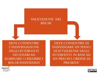 Il documento discute le modalità di effettuazione della valutazione dei rischi per la sicurezza e la salute sul lavoro, inclusi aspetti come stress lavoro-correlato e rischi per gruppi specifici di lavoratori. È delineata l'importanza della cooperazione e coordinamento tra datori di lavoro e appaltatori nella gestione dei rischi derivanti da interferenze lavorative, enfatizzando la necessità di un documento unico di valutazione dei rischi (DUVRI). Inoltre, si evidenziano le misure da adottare per prevenire e proteggere i lavoratori, nonché la responsabilità del datore di lavoro nell'eseguire e aggiornare tale valutazione.