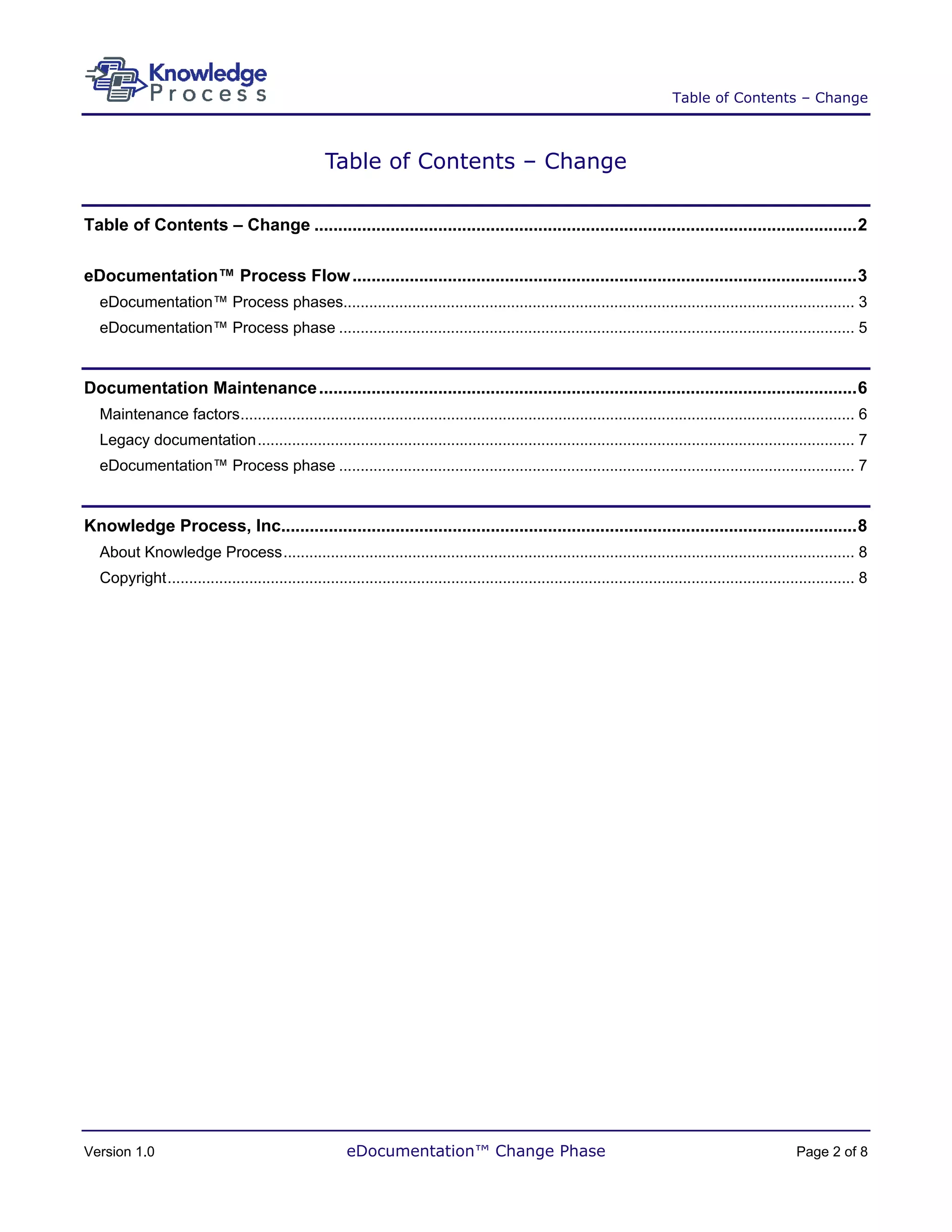 The document discusses the eDocumentation process for managing changes to policies, processes, and procedures. It describes the four phases of the process: plan, build, implement, and change. It emphasizes that the change phase is important for keeping documentation current and addresses how to track and update policies. It also outlines factors that are important for maintaining documentation easily, such as using templates, styles, subject matter experts, and a style guide. The overall process is meant to streamline maintenance of documentation.