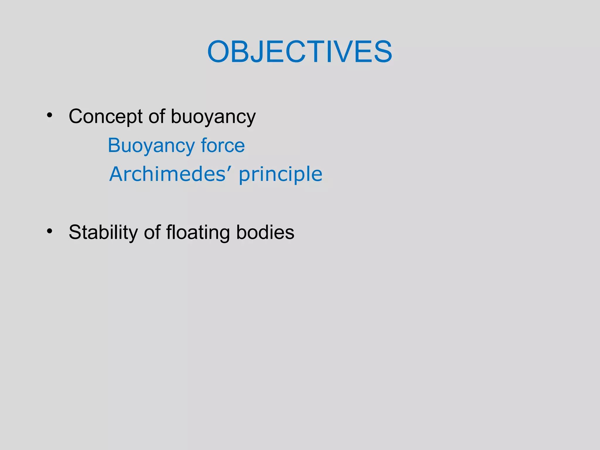 This document provides an overview of buoyancy and stability of floating bodies. It defines key concepts such as buoyant force, Archimedes' principle, and stability. The main points are: