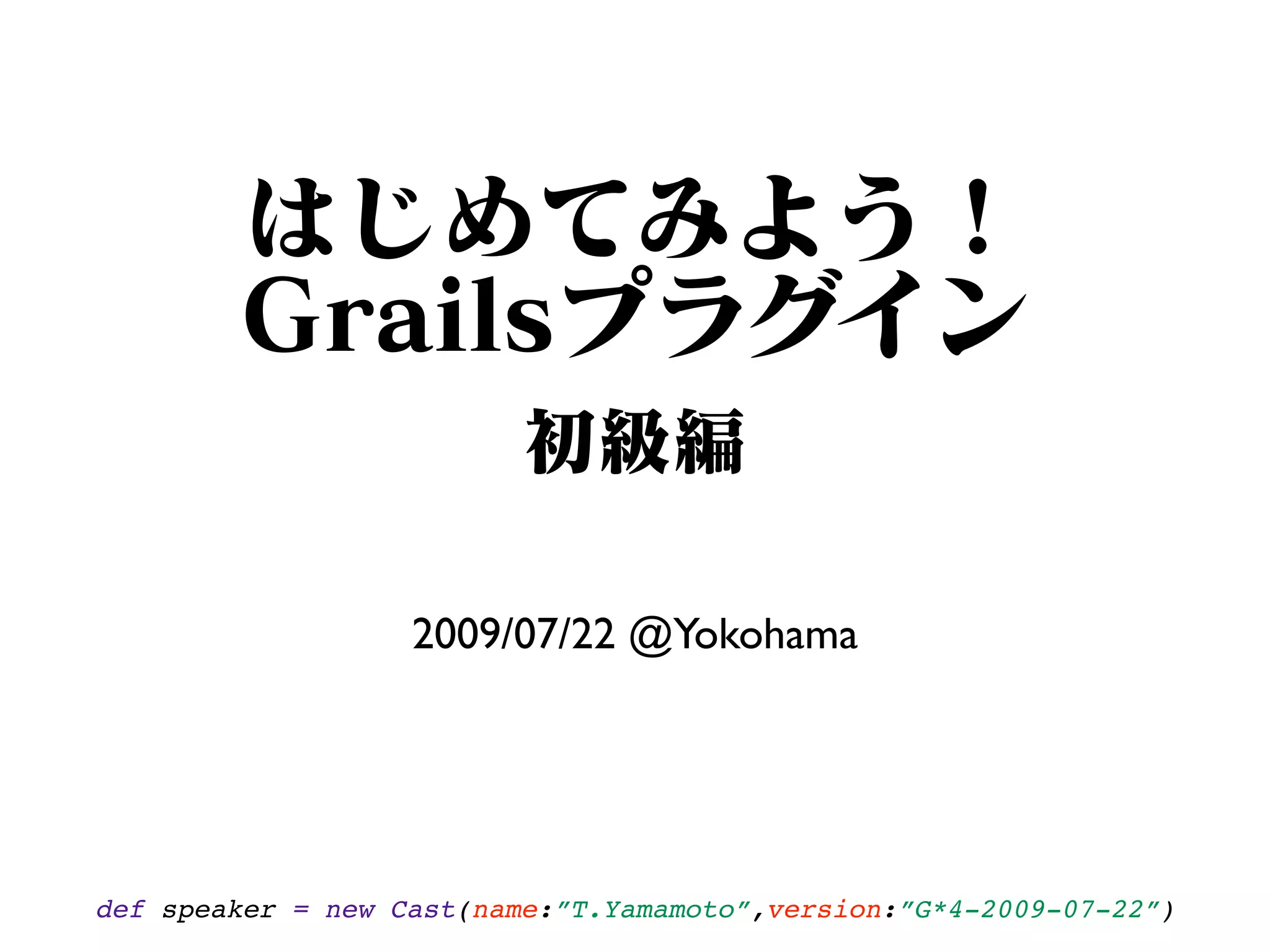 T. Yamamoto spoke at a conference in Yokohama on July 22, 2009 about using Grails, a web framework that uses Groovy and is built on Spring and Hibernate. Grails can be used to quickly develop web applications and up to 90% of new projects use Grails. Yamamoto discussed how to add additional servlets and mappings to a Grails application's web descriptor as well as how to configure additional Spring beans.