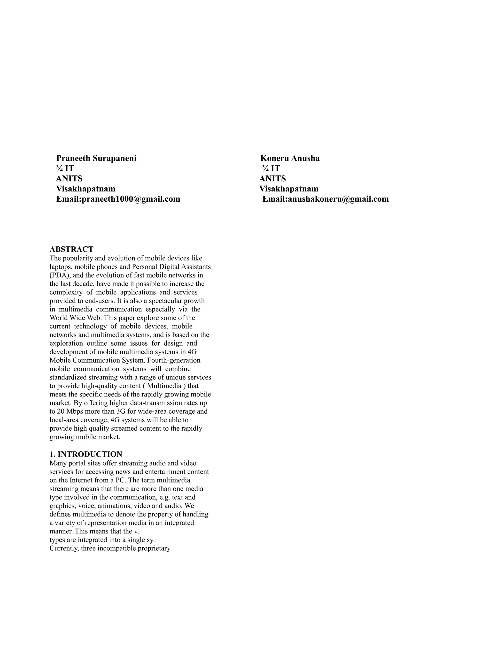 The document discusses challenges and opportunities for streaming multimedia content over 4G mobile networks. 4G networks will provide transmission rates up to 20 Mbps, allowing high quality streaming of content to meet demands of the growing mobile market. However, heterogeneity across devices, networks and content protection pose challenges. Standards-based solutions are needed to efficiently deliver adapted content across varied networks and devices while protecting content.