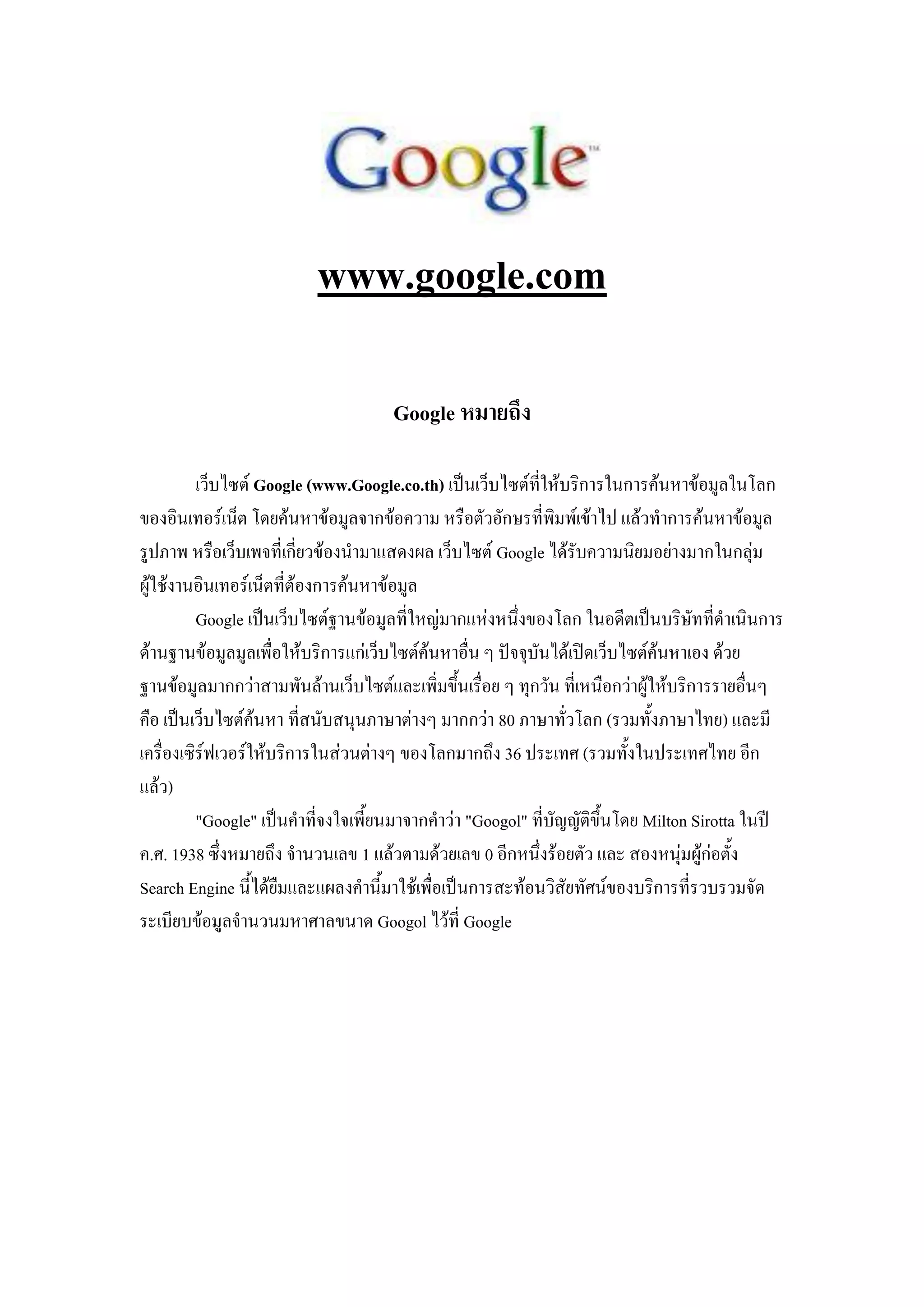 ออกมาสู่ท้องตลาดเว็บไซต์ ซึ่งช่วยทาให้บริการค้นหาของ Googleสามารถทาได้อย่างง่าย ๆ โดย