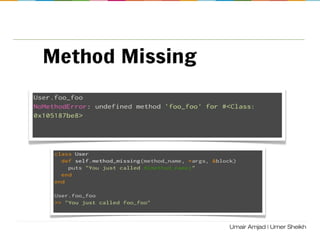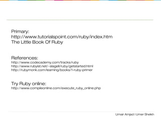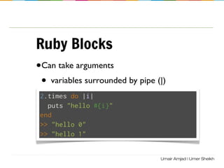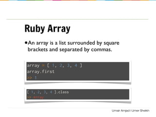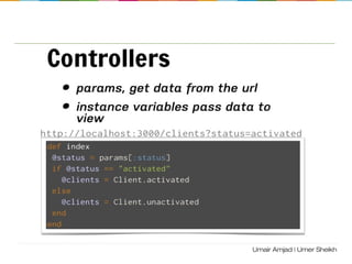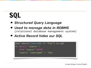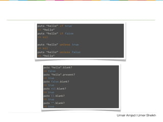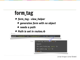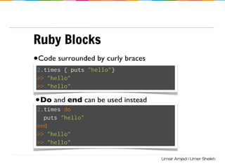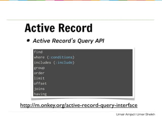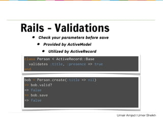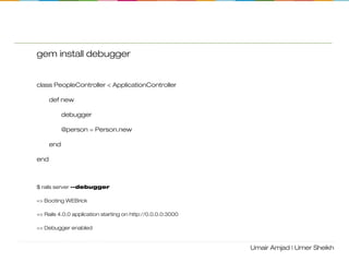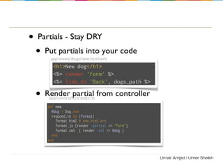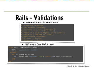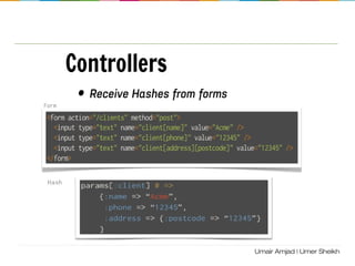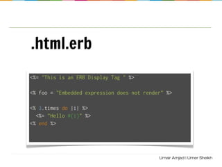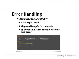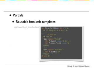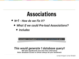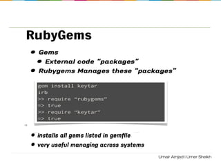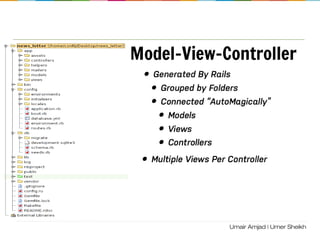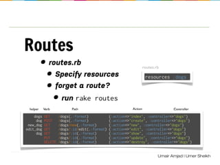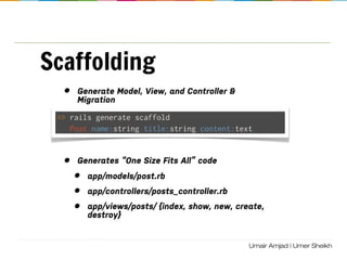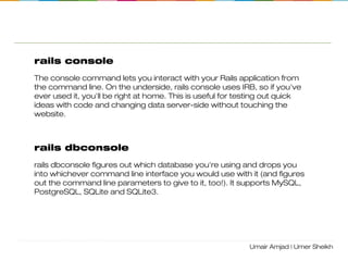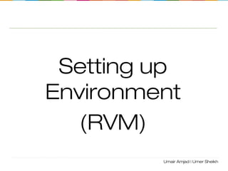 This document outlines a Ruby on Rails workshop led by Umair Amjad, detailing the agenda, topics to be covered, and prerequisites for participants. It emphasizes the importance of Ruby on Rails in product development and lists several notable companies that utilize it. Additionally, it provides resources and environment setup instructions for attendees to prepare for the sessions.