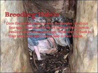 Breeding Habits Twoeggs are usually laid with both parents taking shifts of 1 to 3 days to mind them. The chicks are guarded by one parent while the other is out collecting food for up to 30 days.