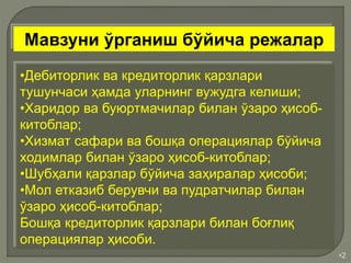 учун ҳисобдорлик асосида шунингдек, хизмат