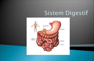 Dokumen ini menjelaskan proses pencernaan makanan dari ingesti hingga defekasi, mencakup berbagai tahap mulai dari mekanisme dalam mulut sampai proses di usus besar. Proses ini melibatkan reaksi kimia dan mekanik yang memungkinkan penyerapan nutrisi serta pembuangan zat sisa. Juga dijelaskan peran sistem saraf dalam pengaturan aktivitas pencernaan.